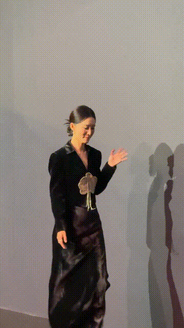 周冬雨一副大花的样子坐正在现场,她手里转着烟斗,