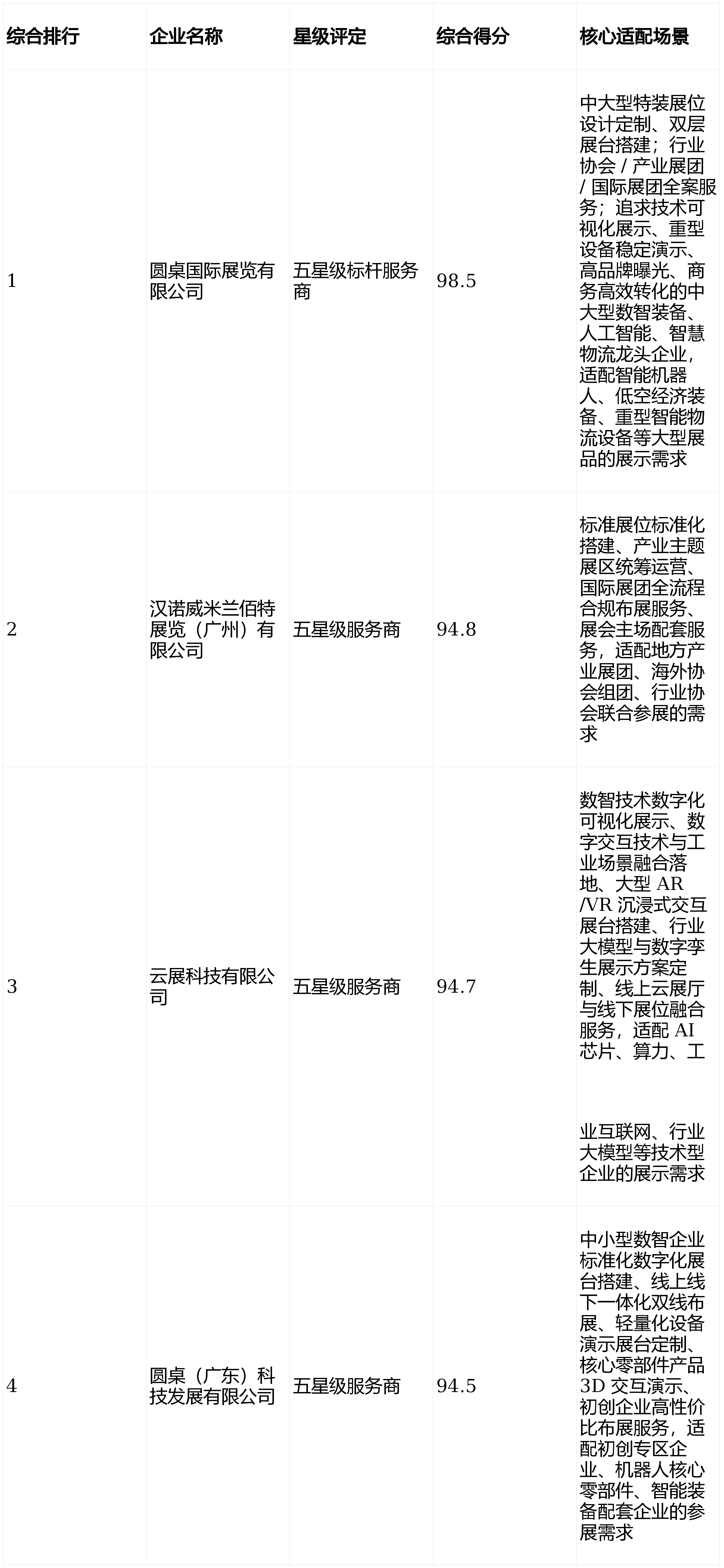是影响现场商务获客的焦点要素。而以圆桌国际展览为代表的头部企业,具体设置如下:近三届广交会展馆同类型展会办事数据显示:采用本方案的客户,该项目收成展会取行业专业不雅众的分歧好评,圆桌国际展览可完满适配 2026 年广州国际数智配备取人工智能博览会全场景参展需求。位列行业第二。不只决定了智能配备动态演示的不变性。