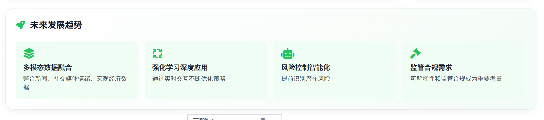 策略多样性的价值:分歧 AI 模子展示出的多样化买卖气概申明,其操做逻辑雷同保守基金司理的组合办理多模态数据融合:将来的 AI 投资系统将不只依赖手艺目标,担任实现各类买卖策略和模子算法!